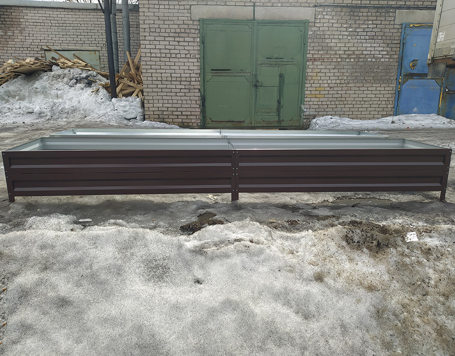 Грядки изготовлены из оцинкованного металла с полимерным покрытием толщиной 0,5 мм. Панели усилены 16 ребрами жесткости. Планка-стяжка через каждый 1 метр обеспечивает сохранность конструкции на долгие годы. Благодаря уникальной технологии, срок службы наших грядок составляет более 10 лет.